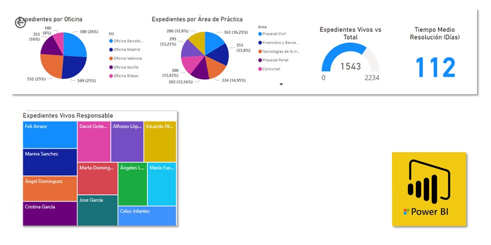 Conecta los datos del despacho a una herramienta de inteligencia de negocio para obtener indicadores clave a nivel de productividad y control de resultados por área de práctica, clientes y asuntos.